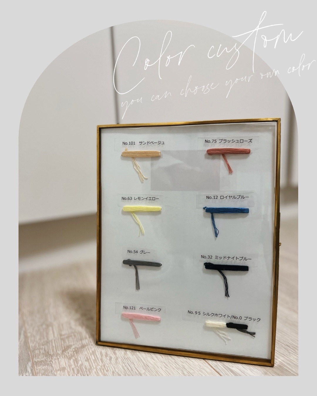 ➀金具、②ビジュー2種類、③刺繍カラーを商品代金+¥1,100(税込)で変更できます。