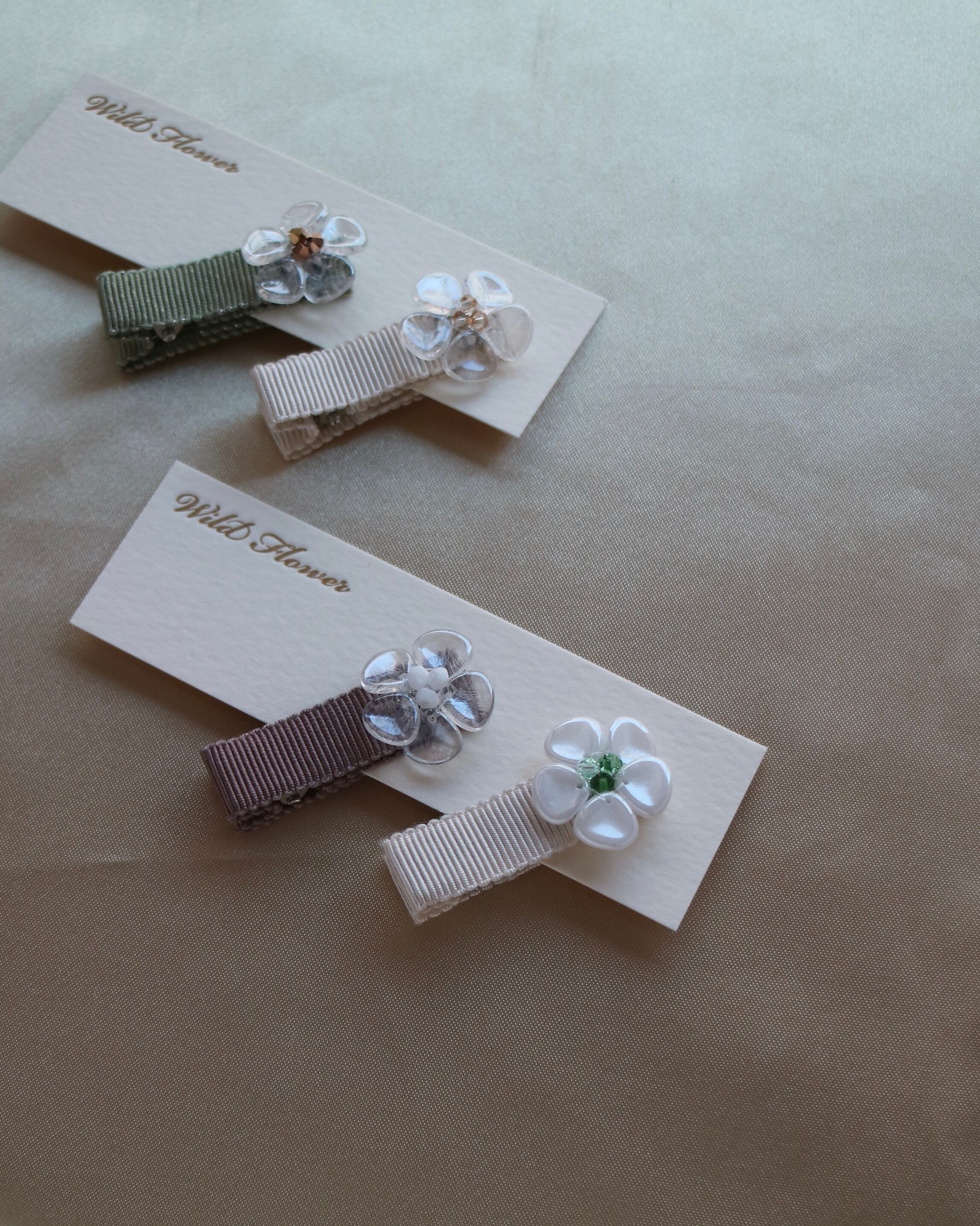 クリアなお花モチーフは一つ一つ手作業で丁寧にお作りしています