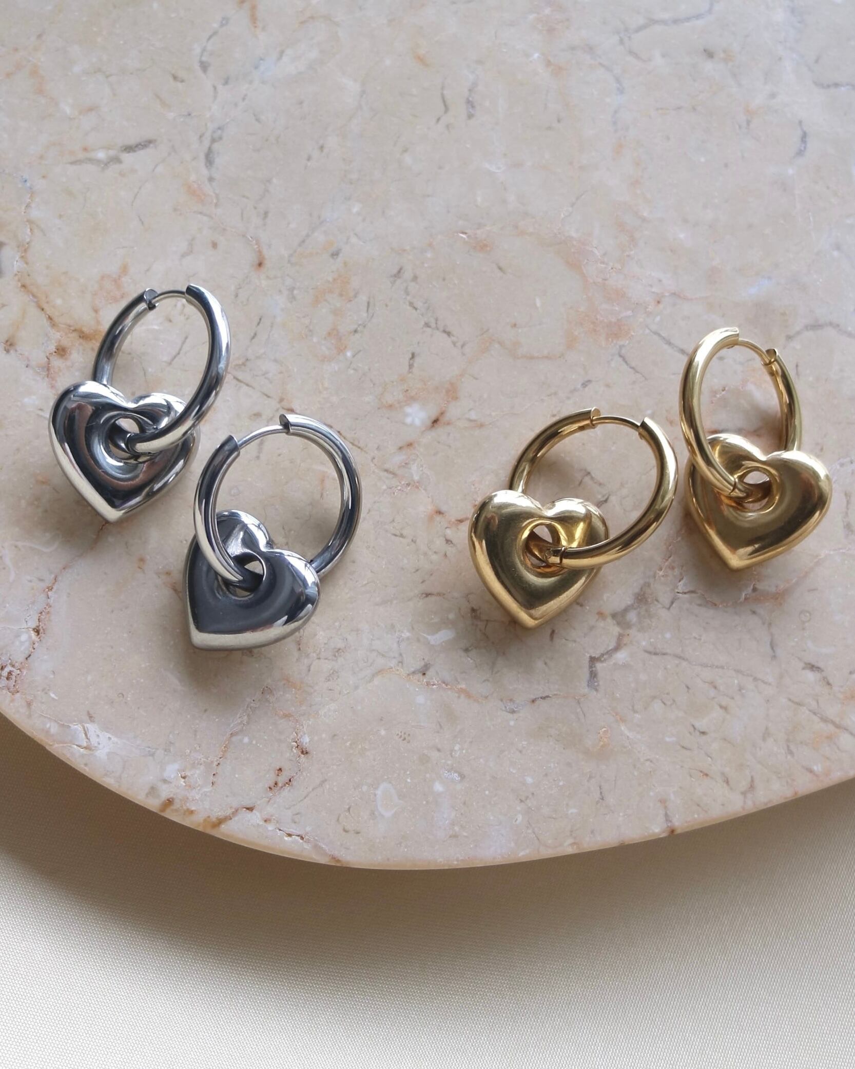 甘くなりがちなハートデザインをメタル素材に落とし込むことで
